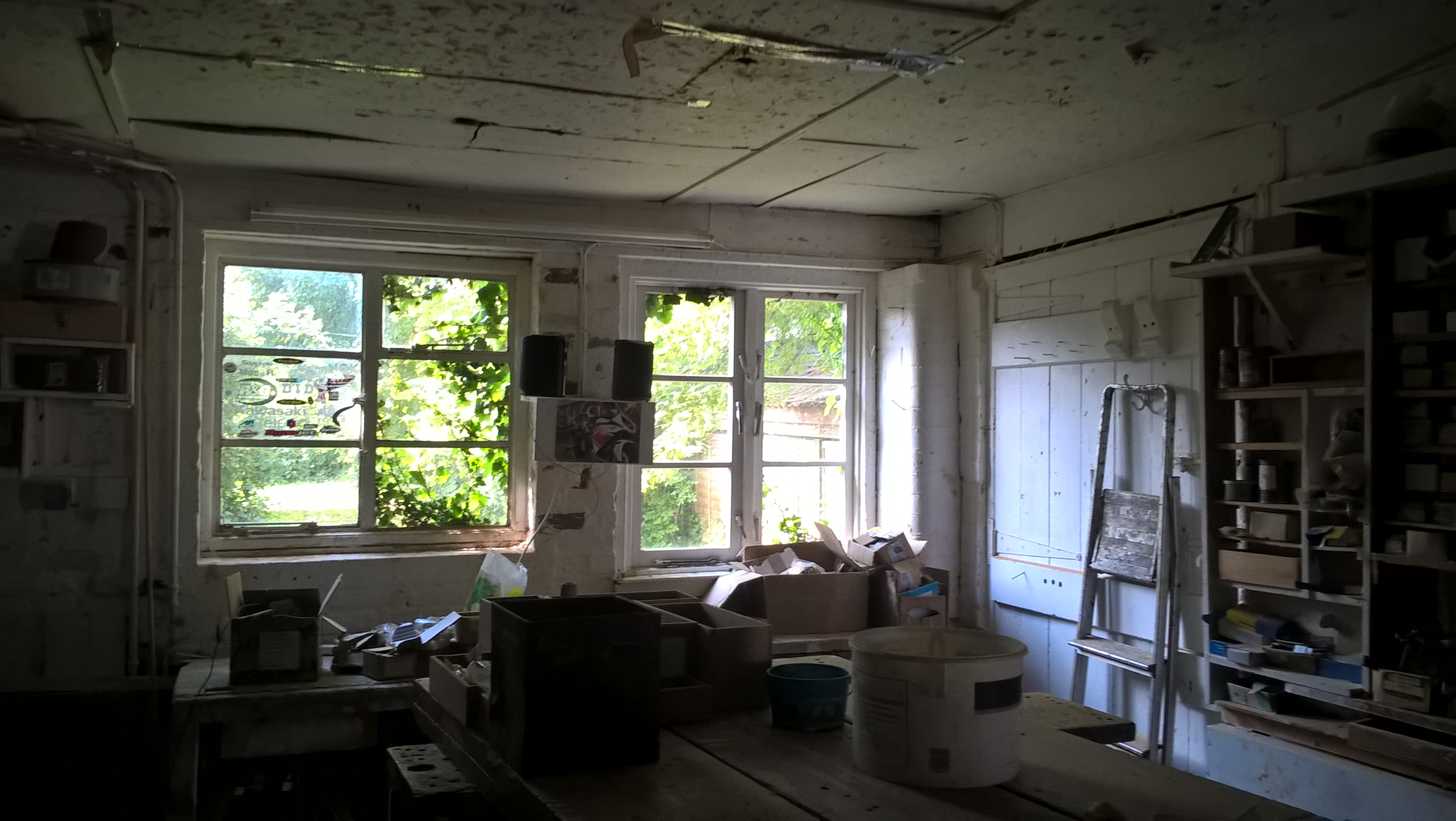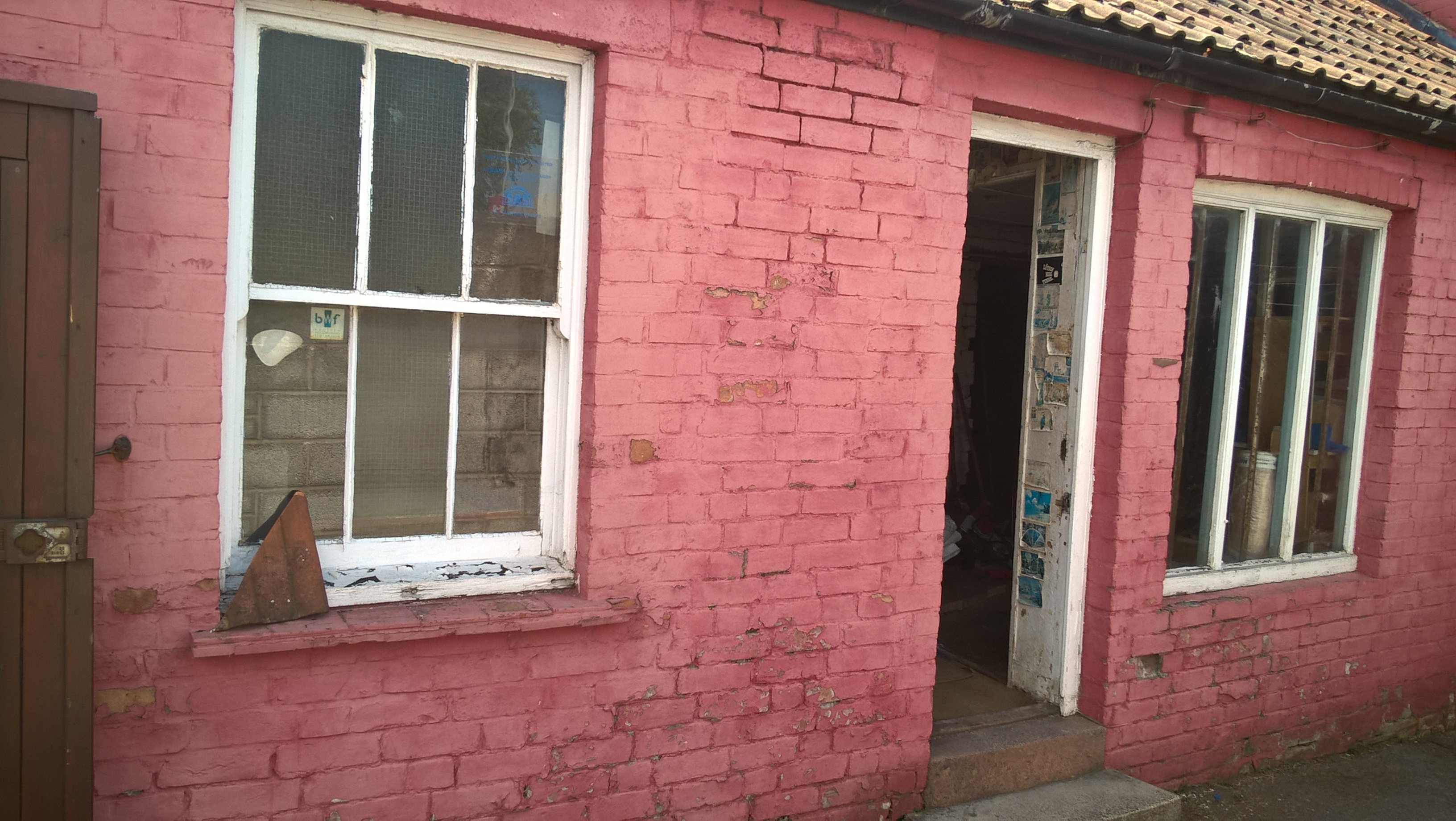 I plan to have solar power, paper bags as packaging, re-use of materials to create sculpture and art – racing ahead here – hard not to do. First, we have to rescue the building – you can see here lots of pictures of how the building is now I hope you can see why I have fallen for it. Planning to start at the front with a wider door for access a smart insulated gallery entrance and to ensure the buildings are watertight and any urgent work carried out immediately.