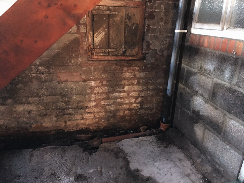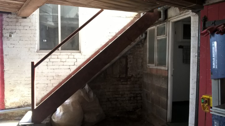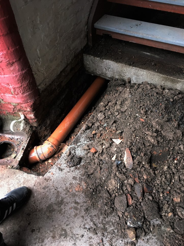 Today at the gallery a trench has been cleverly cut under the covered yard stairs – it contains a drain pipe the old one was a trip hazard and not working well at its job taking rainwater off the flat bathroom roof now it should work well, look neat and not cause a hazard on the stairs – what a win win situation!