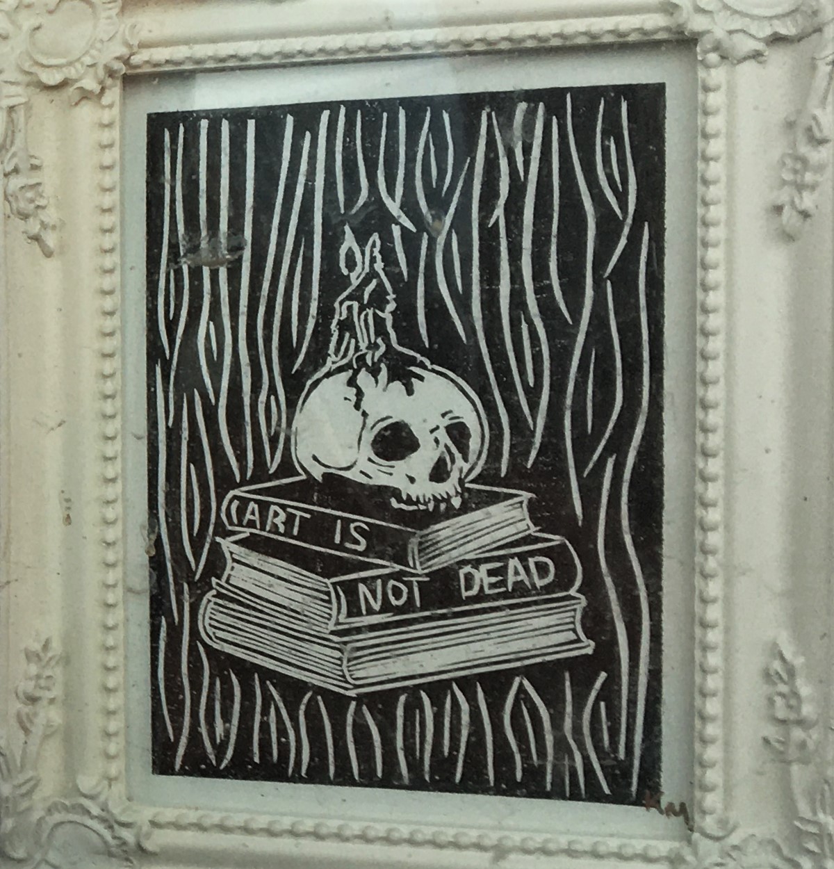Please see Kayleigh Miller’s latest Lino cut prints fabulous original work, she is looking at all art forms with poignant theme ‘Art is Not Dead’. Bridgy Gallery is displaying two of these works in the window art forms painting on left and writing on the right, two of my personal favorite activities.