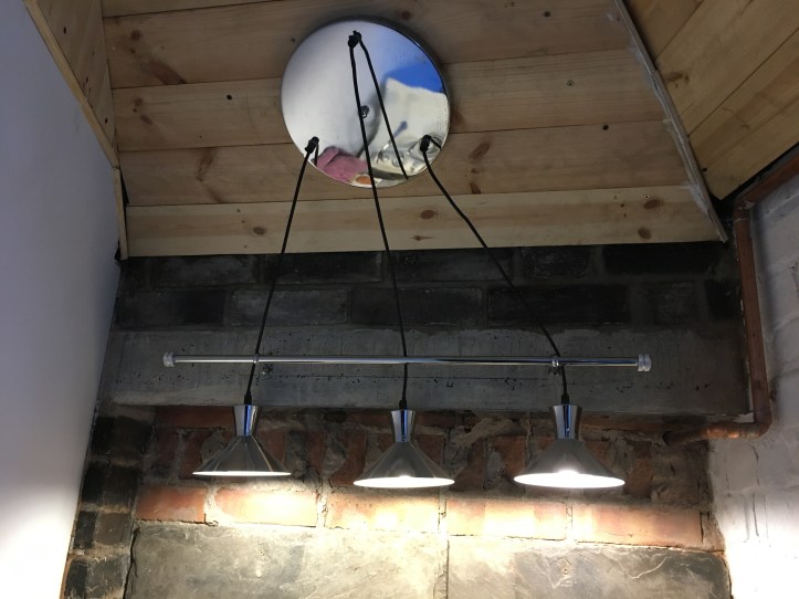 The tea and coffee area has its lighting bar, running water, work surface and splash back now it just needs some filling, cleaning, a kettle, cups. tea & coffee and a splash of milk. The doorway to the garage gallery now has its lovely wiggly mirror so you can see if anyone is coming up the ramp. The disabled loo needs its pictures, vase on the shelf, soap and loo roll dispensers filled.