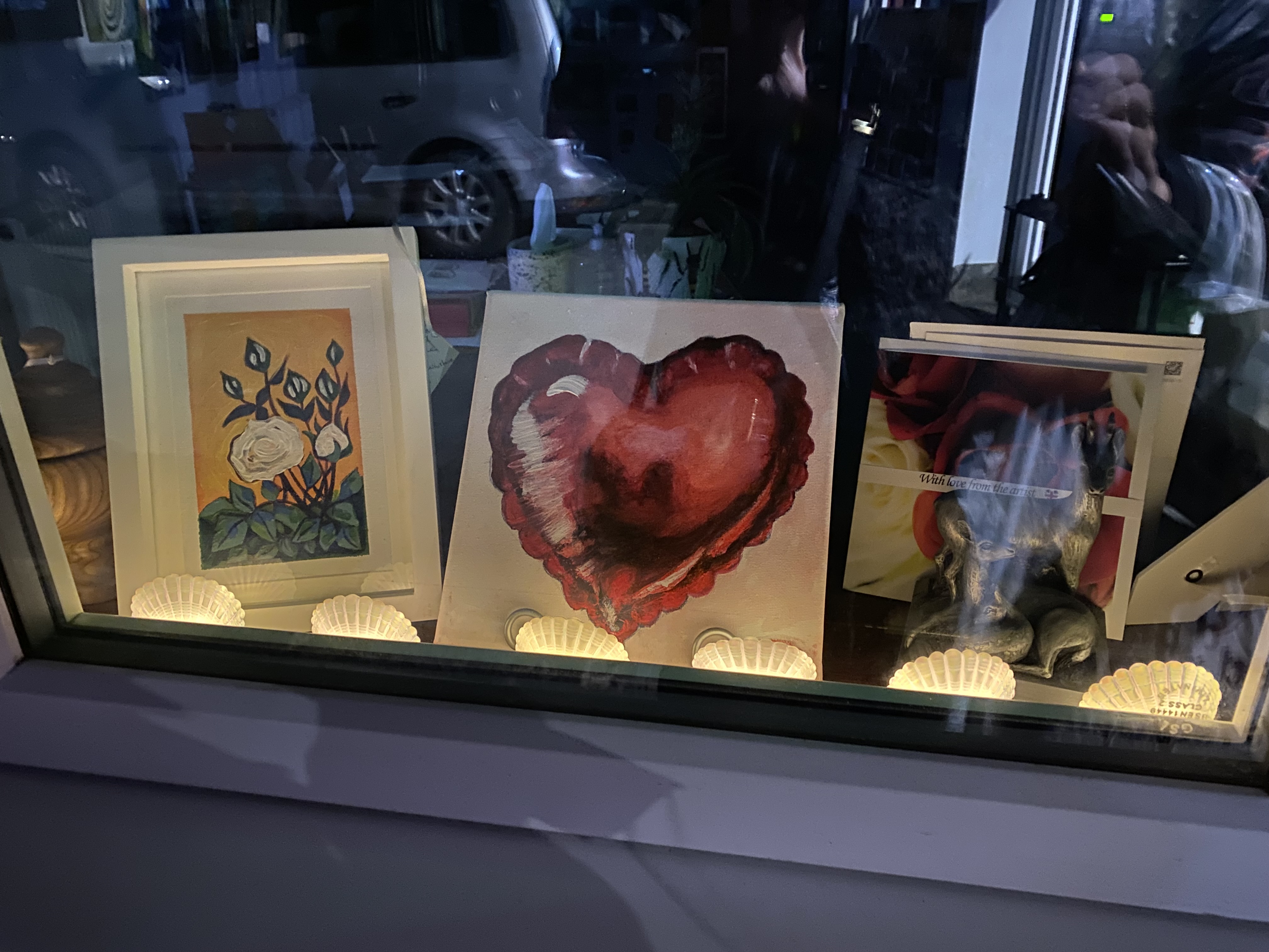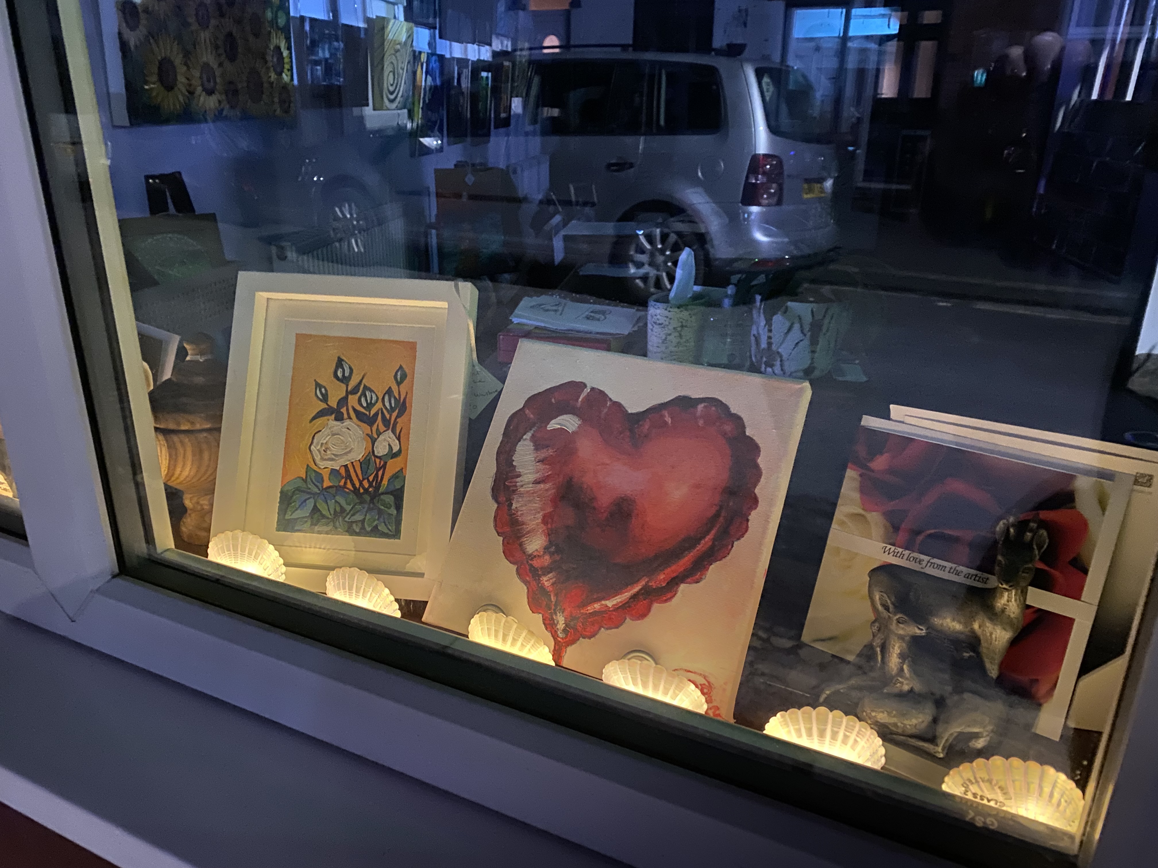 Lovely SwansLove hutRomanceThe start of our Valentines window displayNew Sign on side of galleryNew Sign on side of receptionlogo on garage side of buildingNew Trade mark logo on side of galleryOur Christmas window Rockin Robin by Nicky Farrell He flew off to a new home for Christmas