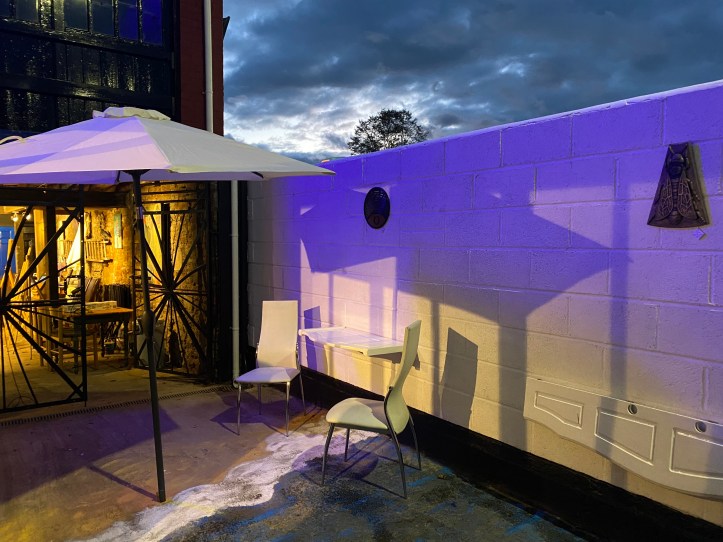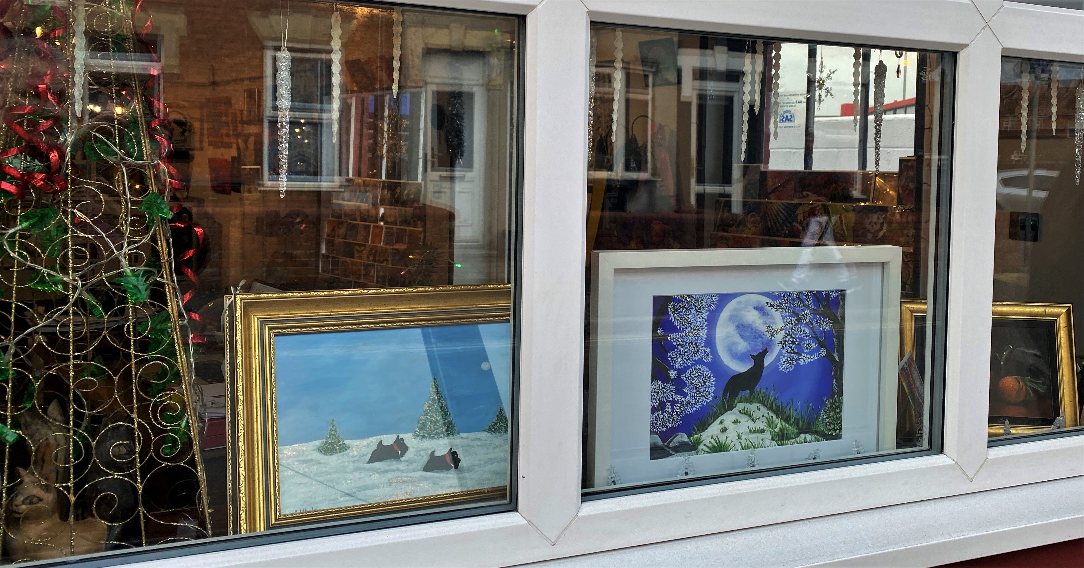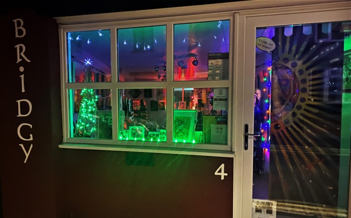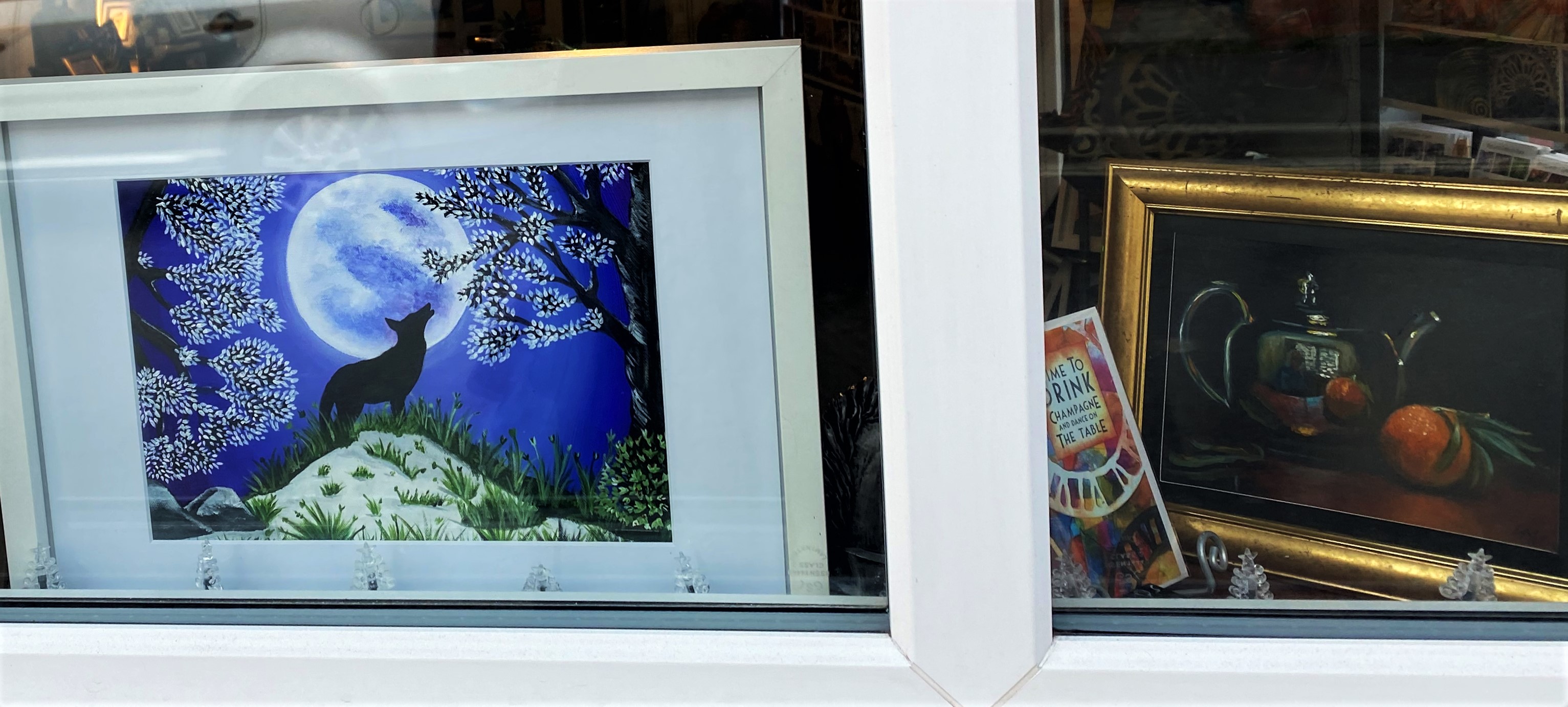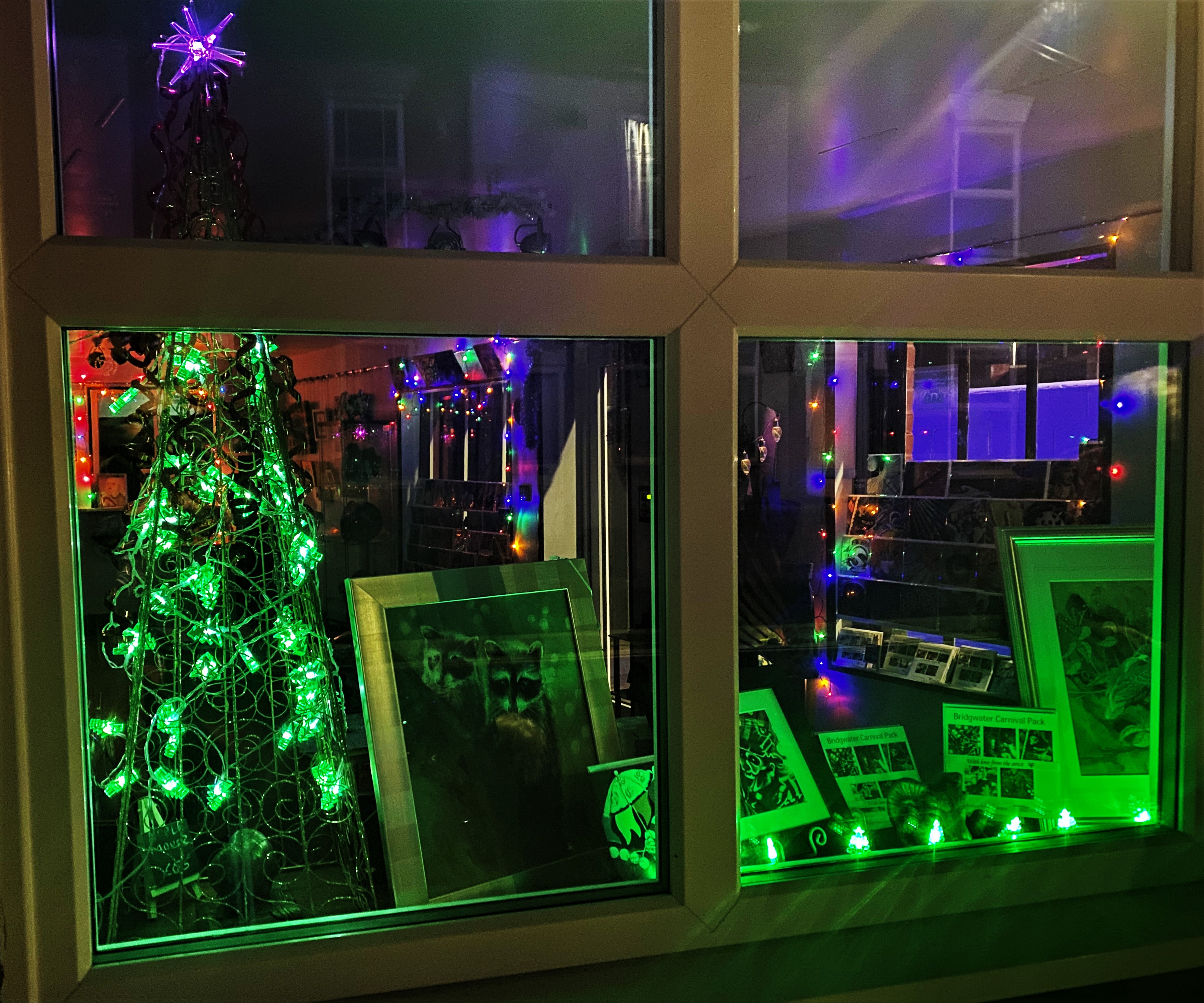 Wolf in Moonlight arrives in Christmas windowChristmas BaubleLovely SunsetTime to drink and dance on the tableVisiting FungiSt Saviours studio new blue night glowBeautiful purple shaddowsBlue LED sign at night