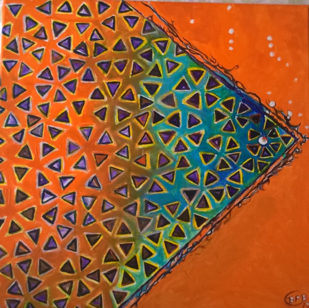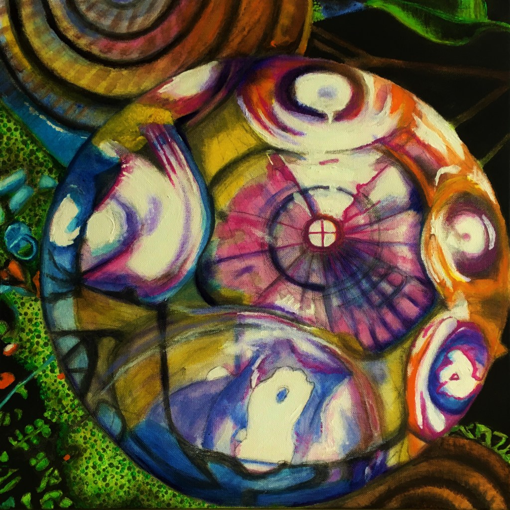 Bridget takes photographs as she walks around Bridgwater & elsewhere these are the starting point of her paintings taking the images that most inspire her she uses her laptop to bring out the colours present in the photo and crops and turns the image holding regular competitions between these images, she then picks those that she wants to commit to canvas choosing a format and size to suit. Bridget paints in acrylic on canvas her work will be on display in Bridgy Gallery in Bridgwater Somerset when it opens in 2021. You can also find her greetings cards from Bridgwater Circle series and other work on http://www.lovefromtheartist.com